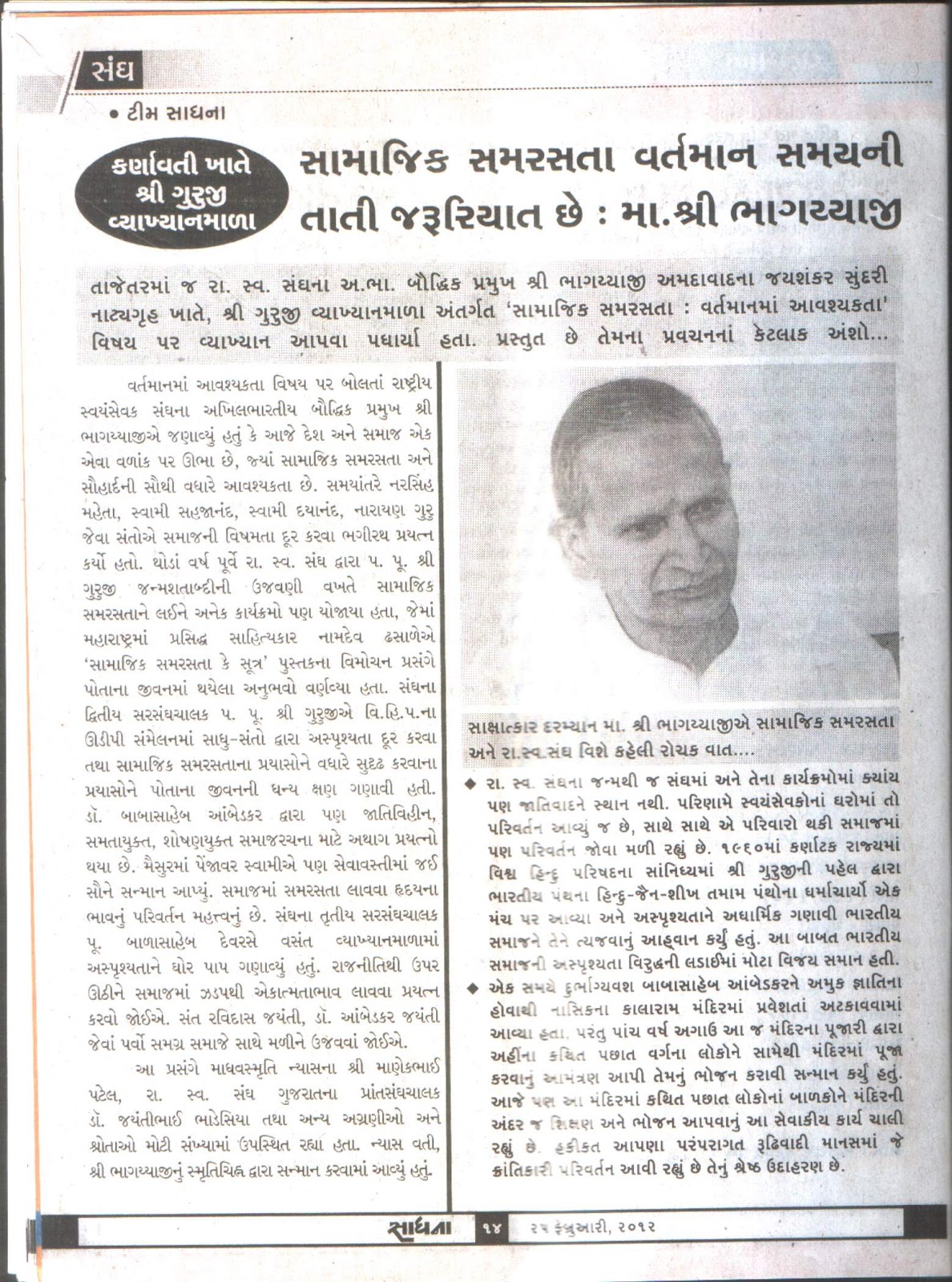 Man Bhagaiyaji Vyakhyan at Guruji Vyakhyan Mala: Karnavati 18 Feb 2012