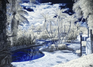 In this series entitled IR, Netsounski snaps shots of tropical hotspots (no pun intended) and, using infrared technology, distorts the colors in a beautiful way. Vivid shades of green and yellow are muted in the photos, while retaining a strong blue tone. What's left is a striking combination of icy whites and blues. The result is a fairy tale-like winter wonderland.