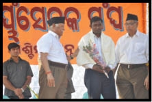 चार दिवसीय संबलपुर दौरे पर आए संघ प्रमुख मोहन भागवत ने वीर सुरेंद्र साय के जन्मभूमि ¨खडा गांव जाकर श्रद्धांजलि अर्पित किए। इसके साथ ही उन्होंने वीर सुरेंद्र साय के परपोते लालफकीर साय व परिजनों से मुलाकात कर अंग्रेजी हुकूमत के खिलाफ 1857 से पहले संघर्ष किए जाने और उनके बलिदान को याद किया। जबकि संबलपुर में संघ की ओर से नारी सेवासदन मैदान और मंदलिया मैदान से अलग- अलग रूटमार्च निकालकर नगर परिक्रमा किया। नारी सेवासदन मैदान से निकाले रूट मार्च के जेल चौक पहुंचने पर वहां वीर सुरेंद्र साय की प्रतिमा पर मार्च में शामिल लोगों ने माल्यार्पण किया।